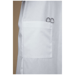 Bata de laboratorio unisex ,con 2 amplios bolsillos de parche, 1 bolsillo en el pecho, ranura para lápiz Longitud de la chaqueta: larga 55% Algodón / 45% Poliéster Popelín