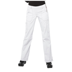 Pantalón con broche y cierre al costado, elasticado parte trasera, multiples bolsillos cargo